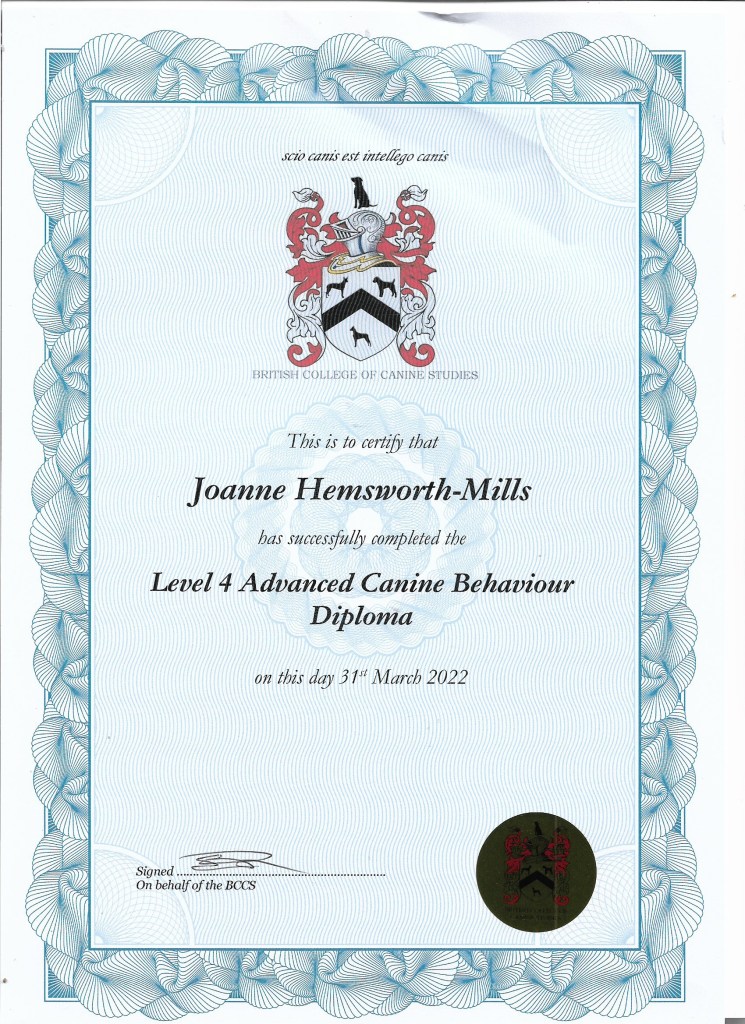 - Advanced Canine Behaviour Diploma from the British College of Canine Studies.https://www.britishcollegeofcaninestudies.com